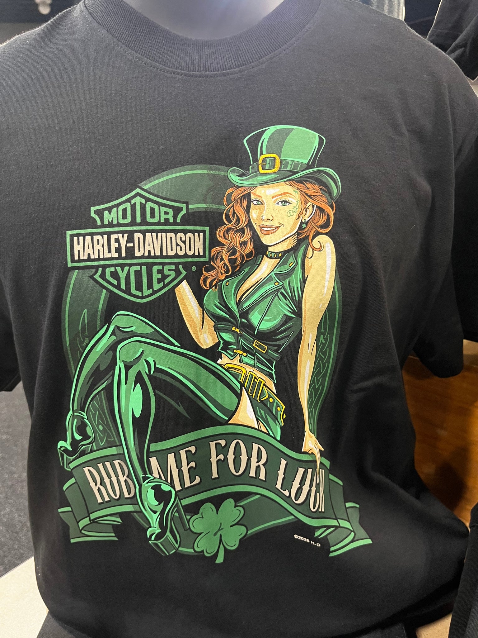 Men's and women's 2026 St. Patrick's Day shirts. All shits have a Bar and Shield on the back that includes dealer name, city, and state.